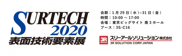スリーアールソリューションは、1月29日~31日に東京ビックサイトで開催される「SURTECH2020 表面技術要素展」に出展。工業用内視鏡等の製品を展示します。 - Dream News