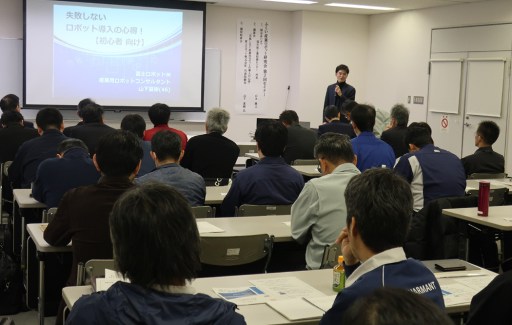 皆さま、講義の内容に心当たりがあったらしく、真剣に聞いてくださいました。特に会場が盛り上がったのが、私が成功に導いてきた工場の動画をお見せした時でした。それは、ロボットの導入が初めての企業がロボット化に成功した事を実感できる動画であり、しかもその動画は私の会社が「やらせ」で上手に作った動画ではなく、工場の方の協力がにじみ出ている動画であったため、拝見された方々の胸を強く打ったようでした。